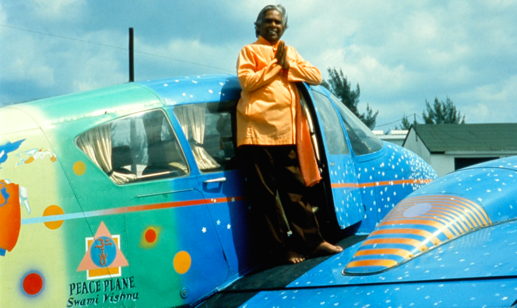 Swami Vishnudevananda came to the West to share the teachings of Yoga but he was also deeply concerned about peace and the well being of the world. He learned to fly and bought a small plane, which earned him the nickname of “The Flying Swami”.